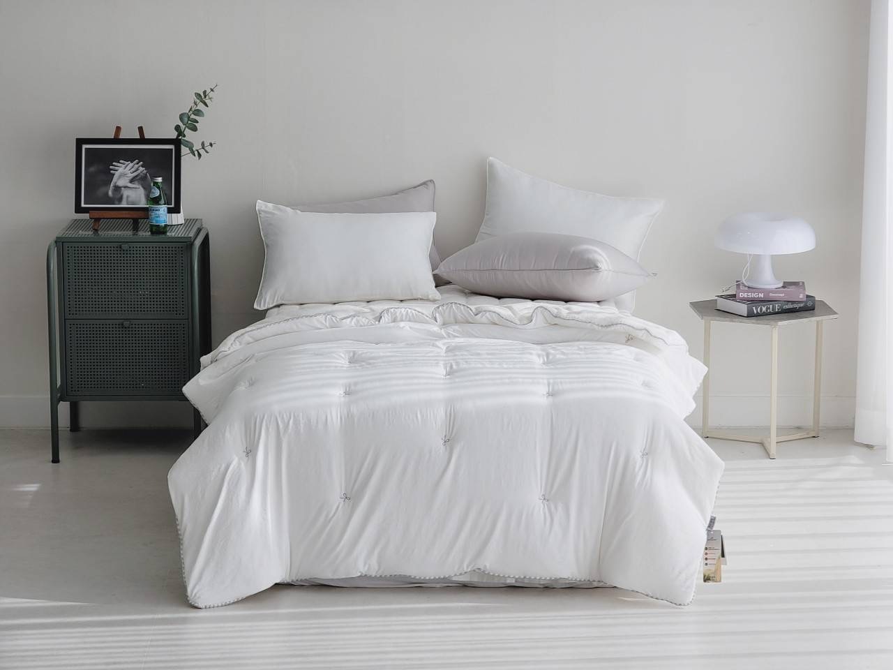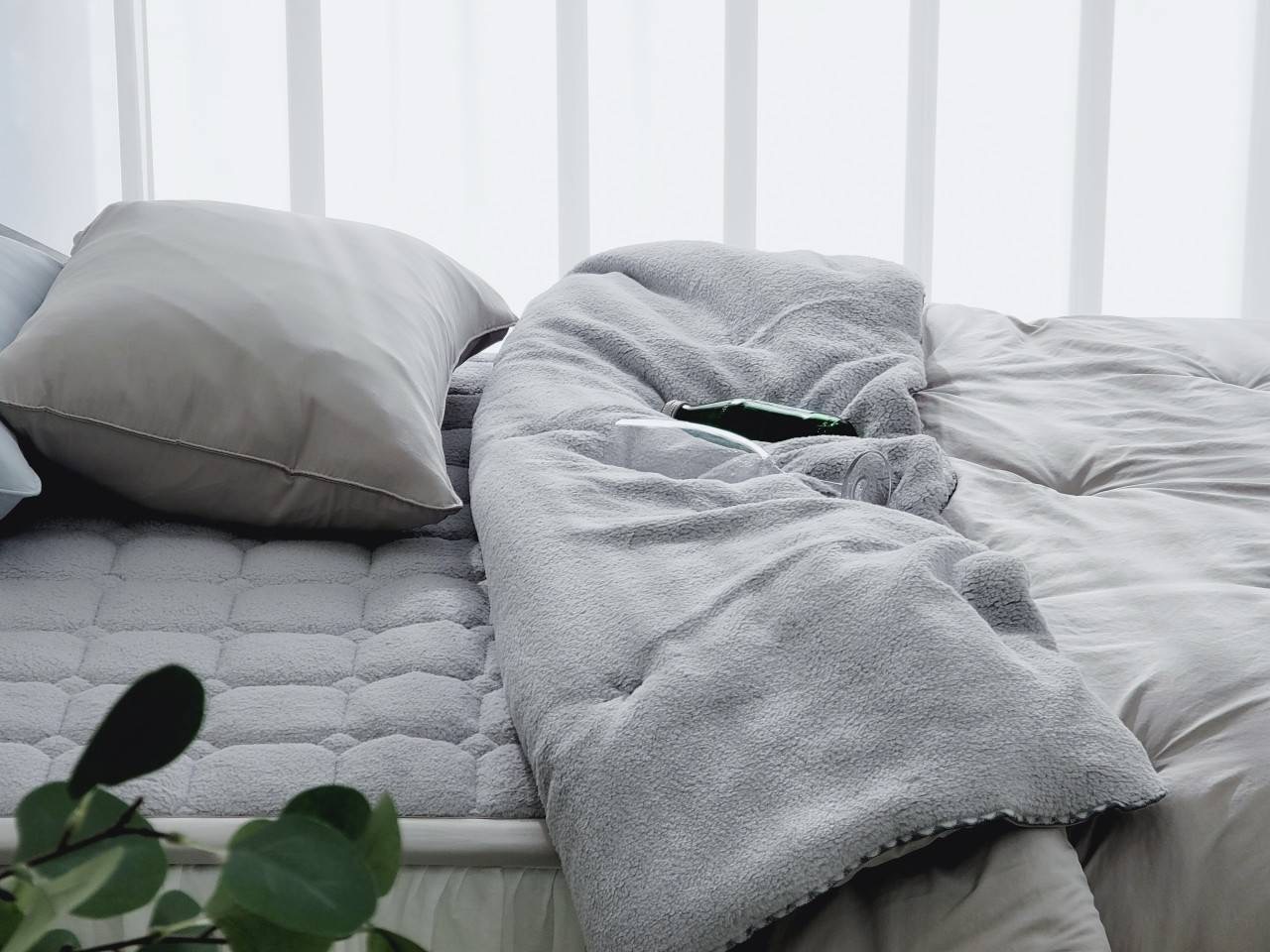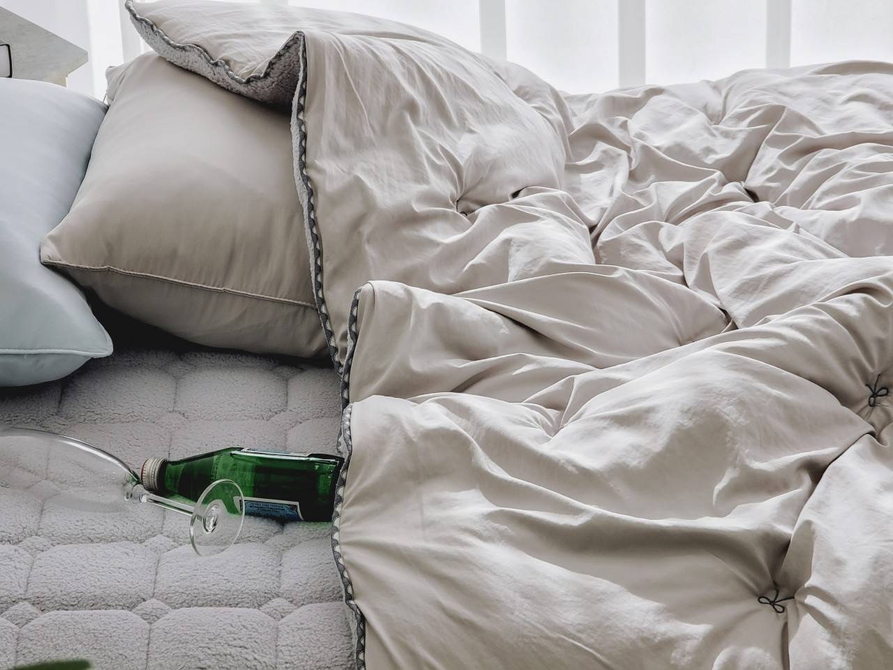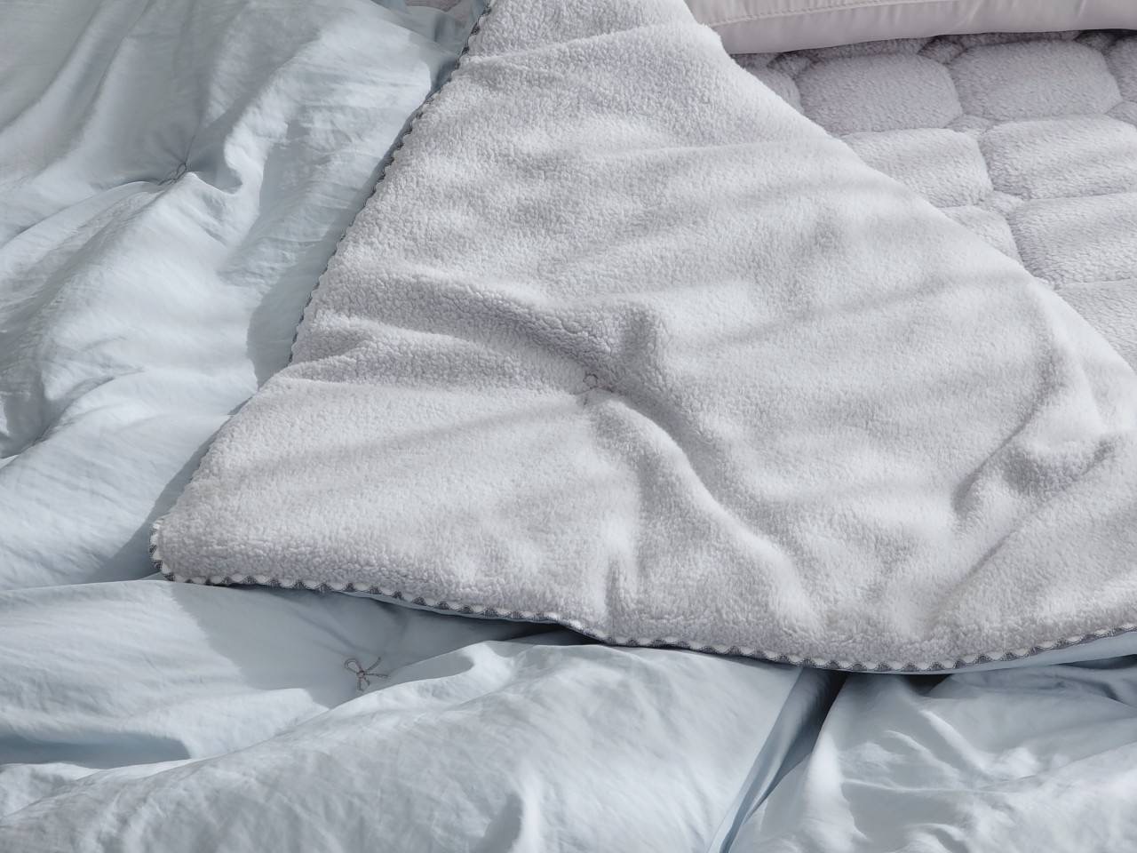 蝴蝶結收邊刷毛冬被/枕頭套