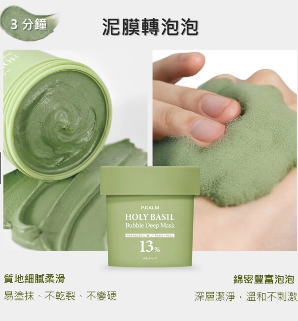 3 分鐘從泥膜轉化為泡泡面膜,溫和不刺激。