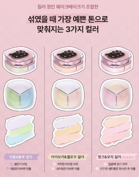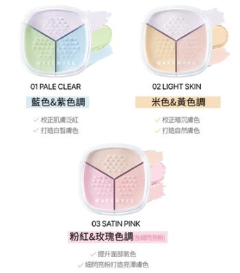 使用方法:一次倒出 3 種顏色,用粉撲或刷子混合均勻後塗刷於肌膚
